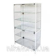 Медична шафа являє собою металеву конструкцію з профілю, стійко розташовану на чотири ніжки, розділену на дві частини. Всі стінки шафи скляні.