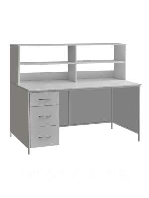Медичний компактний стіл можна використовувати як у лабораторії, так і у фізіотерапевтичних, маніпуляційних кабінетах. Стіл зручний завдяки стандартному своєму розміру та відкритими відсіками — полицями над столом. Стільниця досить широка, її товщина 16 мм. Ящики лабораторного столу висувні.